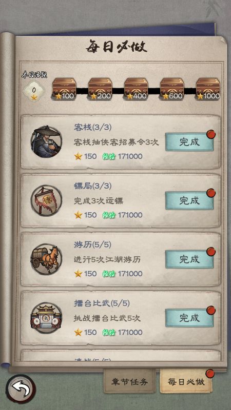 9.章节任务:大量经验、大量侠客经验和大量名望贴以及少量元宝和信物。