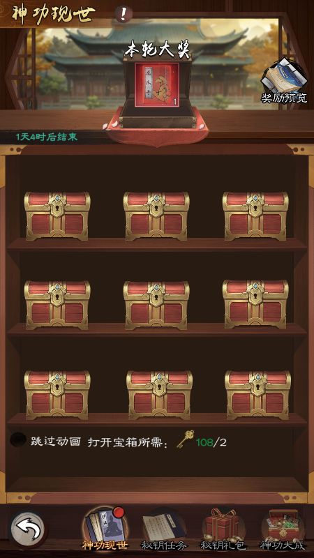 第一次活动我们直接放弃,下次活动精铁攒400-480,只参加第一轮,拿倚天剑,屠龙刀不适合我们。神功钥匙需要374才能全部拿完同样攒够再去开。神功现世和神兵锻造都有每日任务,一定要做给大量的钥匙和精铁。