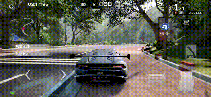 白云山赛道急转弯众多,起步后就会迎来第一个「急转弯」(图2)。由于此处视野较为隐蔽,一般车手在第一次通过时很难发现这里有捷径。所以当车手完美起步后就需要贴着右边的栏杆行驶,在看到弯道的第一时间就及时起漂并根据情况调整车头和角度。
