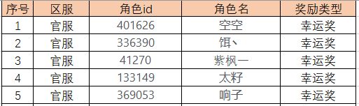 1、幸运奖5名:勾玉*2000;高级祈福签*10;无双随机周边一份