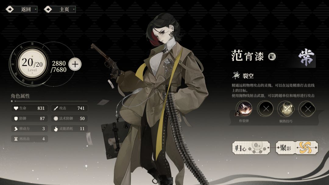 简评:作为T,双防都不是很高,导致不开大招的时候其实掉血很快,再出击时间全游最长,费用消耗也不低,但是其是唯一能够拉敌人而不是推敌人的灵傀,也是T里唯一的远程角色,很多时候是很重要的一环,在打盾卫素材本的时候也是特别好用,很吃关卡设计,也是随时可能跌下T2的角色。