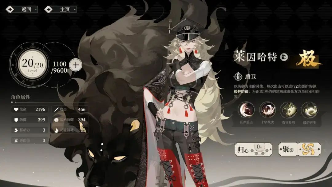 简评:莱因哈特的近乎下位替代,反复上场就能增加援护次数,触发条件比莱因哈特简单,但是作为T不适合反复上场,并且出击冷却时间也比较长,需要大量援护的时候作为副T不断支援的情况比较好用,前期没有莱因哈特和姚青云时也能上场。