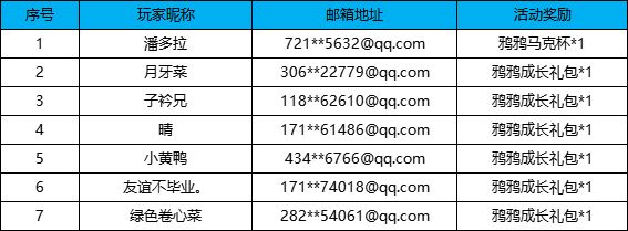 PS:奖励在45个工作日内发放,奖励鸦鸦会通过邮件的方式进行发放,还请大家多多关注邮箱信息,及时激活邮箱哦~
