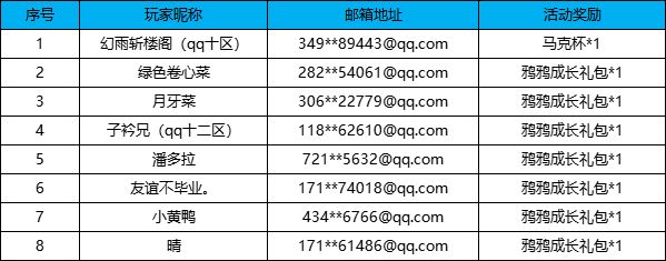 PS:奖励在45个工作日内发放,奖励鸦鸦会通过邮件的方式进行发放,还请大家多多关注邮箱信息,及时激活邮箱哦~