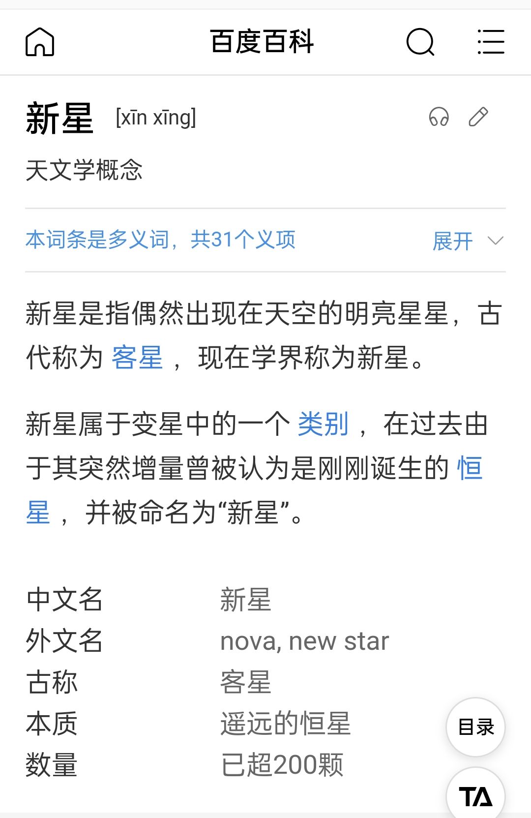 另一方面,新星在我国古代也有过一定的记载,其名为“客星”。顾名思义,即做客而来的星星。和诺瓦跨越世界与史黛拉对话的事实有些契合。