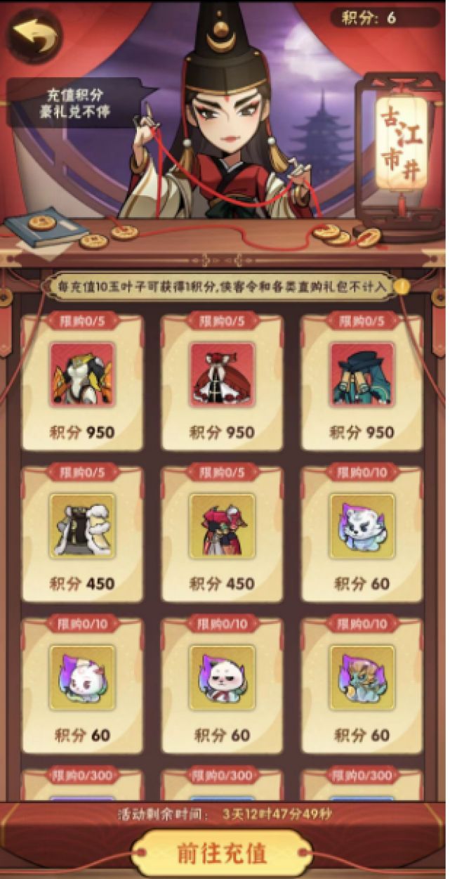 3、每充值10玉叶子就可以获得1积分,兑换好一点的时装的话要950积分,就相当于要充值950rmb。