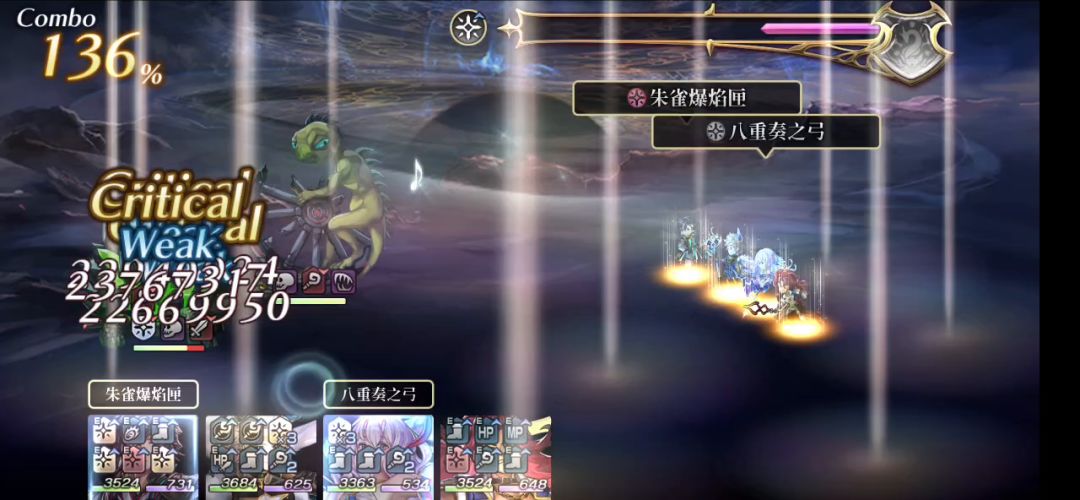 给予全体敌人先制的火属性魔法攻击(特大,最大三段攻击,总倍率12.0)