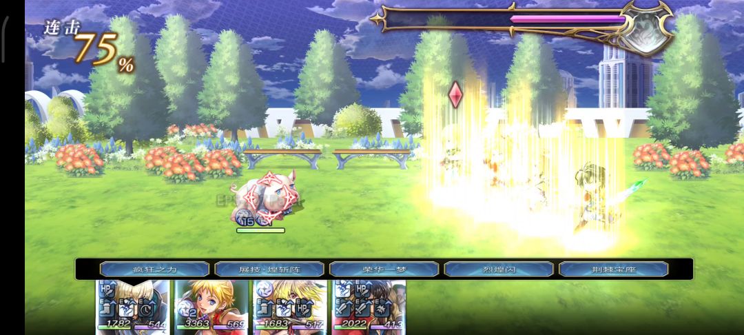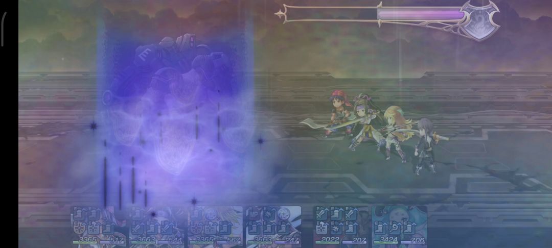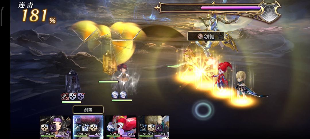 真专蓟负责风输出,学妹负责土输出,小舅子负责攒条+回异常,月读带烈焰猛打打条,af伤害溢出很多,难点在于卡血条不让两个盾同时打掉,所以蓟最后用小技能慢慢压血线,af后再打掉残血盾,两回合攒满af,再故技重施,roll一下小舅子不被控死就行,基本没有什么意外。