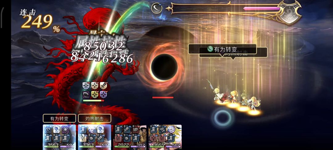 直接af叠满buff加追击打掉两条命,2T5条命,3T4条命,4T的时候叠的斩耐太高了,直接消逝清除buff打掉剩下的命就很容易了,5Taf里先清除耐性buff和降力,血量还是不厚的。