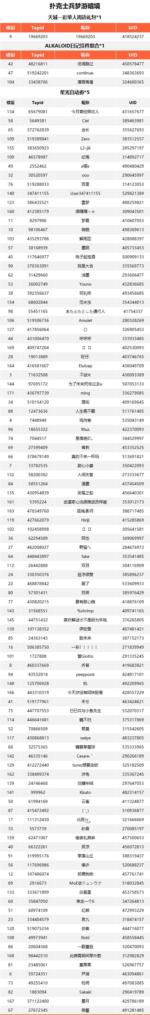 1、每位制作人/UID/TapID仅可获得1次随机奖励