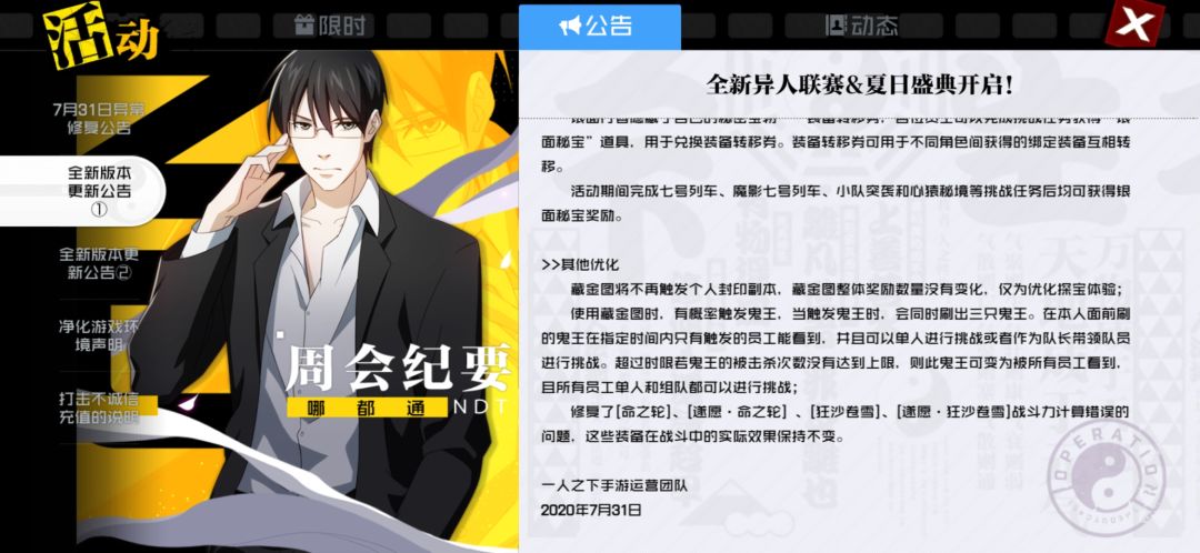 对于鬼王还是想说几句从下面图片可以看到说是会有私人鬼王以及刷新3个鬼王,然后今天小号刷出一个鬼王很开心地找群里小伙伴要不要一起组队打,然后……被抢了,而且也只刷出了一只,这优化了个寂寞吗?难道实际优化内容是,优化了幽月剑技能过于流畅的bug?