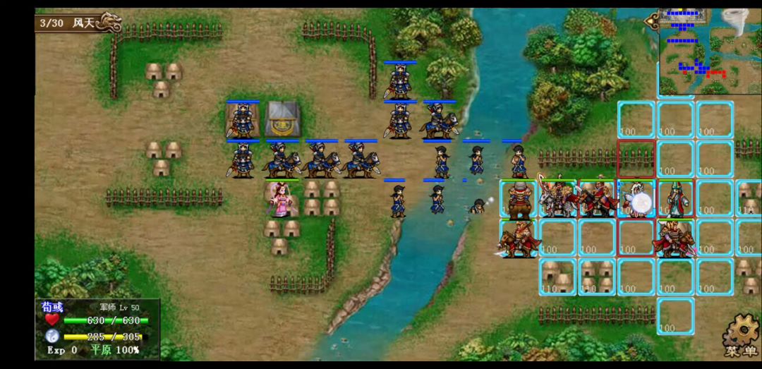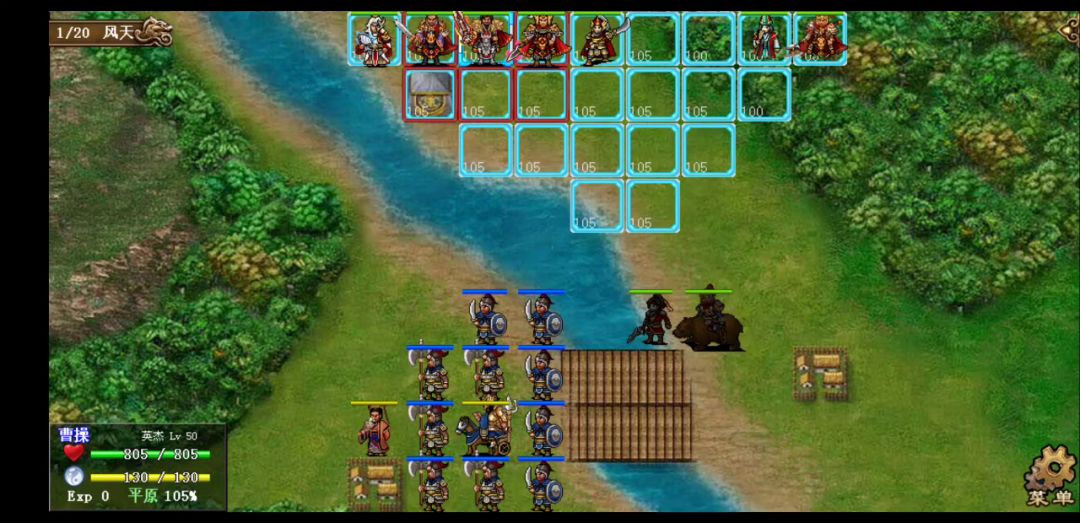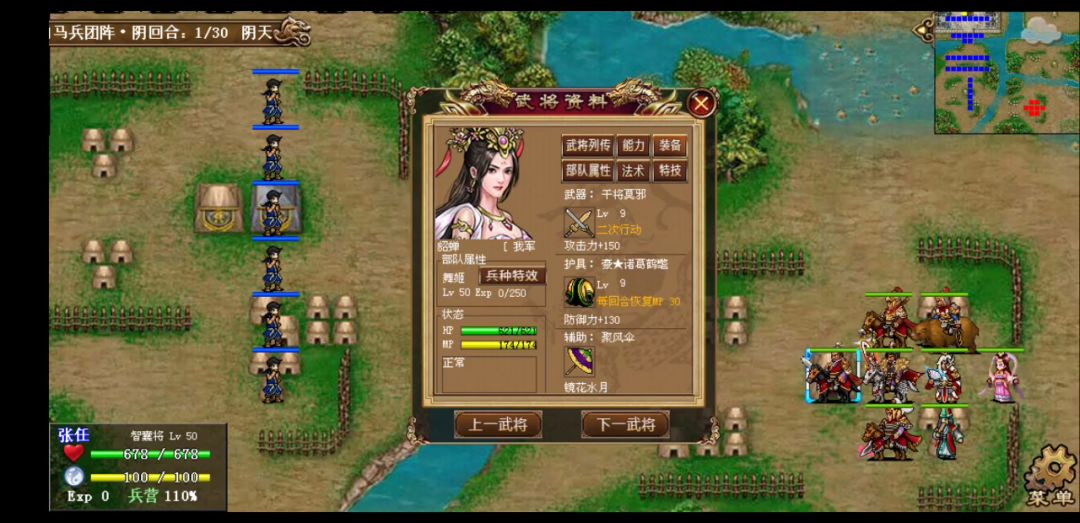 开局选好战场在河道布阵,貂蝉过河去敌后,其他在河边挡住敌军,敌军只一个黄名,全程安逸,毫无压力。