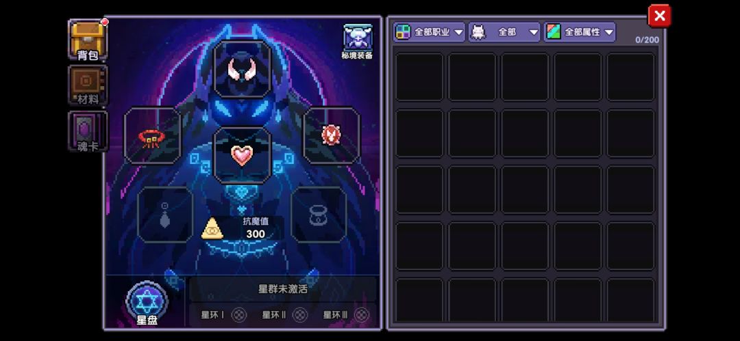 80关后,解锁星界远征,此时背包任务右上角,会出现星界装备图标,点进去会发现,系统送了我们一套抗魔外装