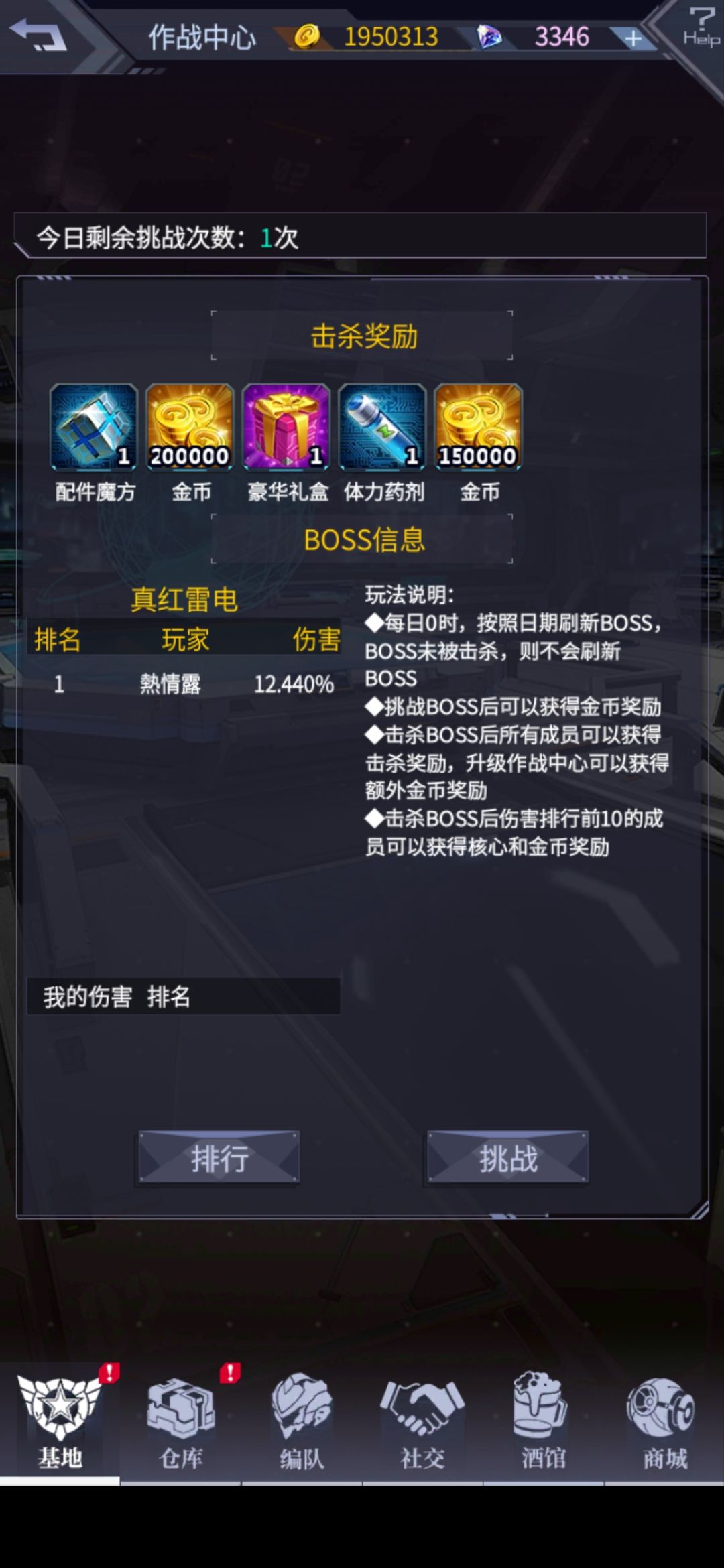 吃我一次机会 第一次打了15%左右 出来发现有人可能和我差不多时间打的 我的伤害没记 第二次正常16%