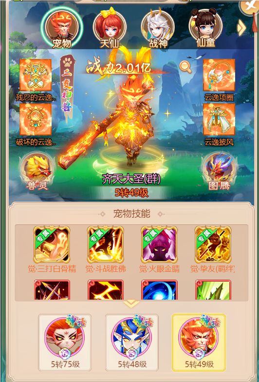 对战的主要输出,还是得看宠物,所以玩家只需要无脑培养宠物就行了,宠物的核心培养是二变觉醒与技能,觉醒越高级输出越强,同时带有眩晕、连击、飞行、迅捷的宠物技能是最秀的。