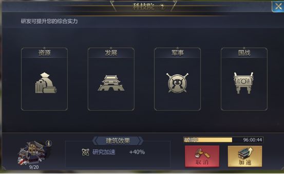 4、 国战科技:国战移动加速、跑商加速、扫荡匪寇收益增加
