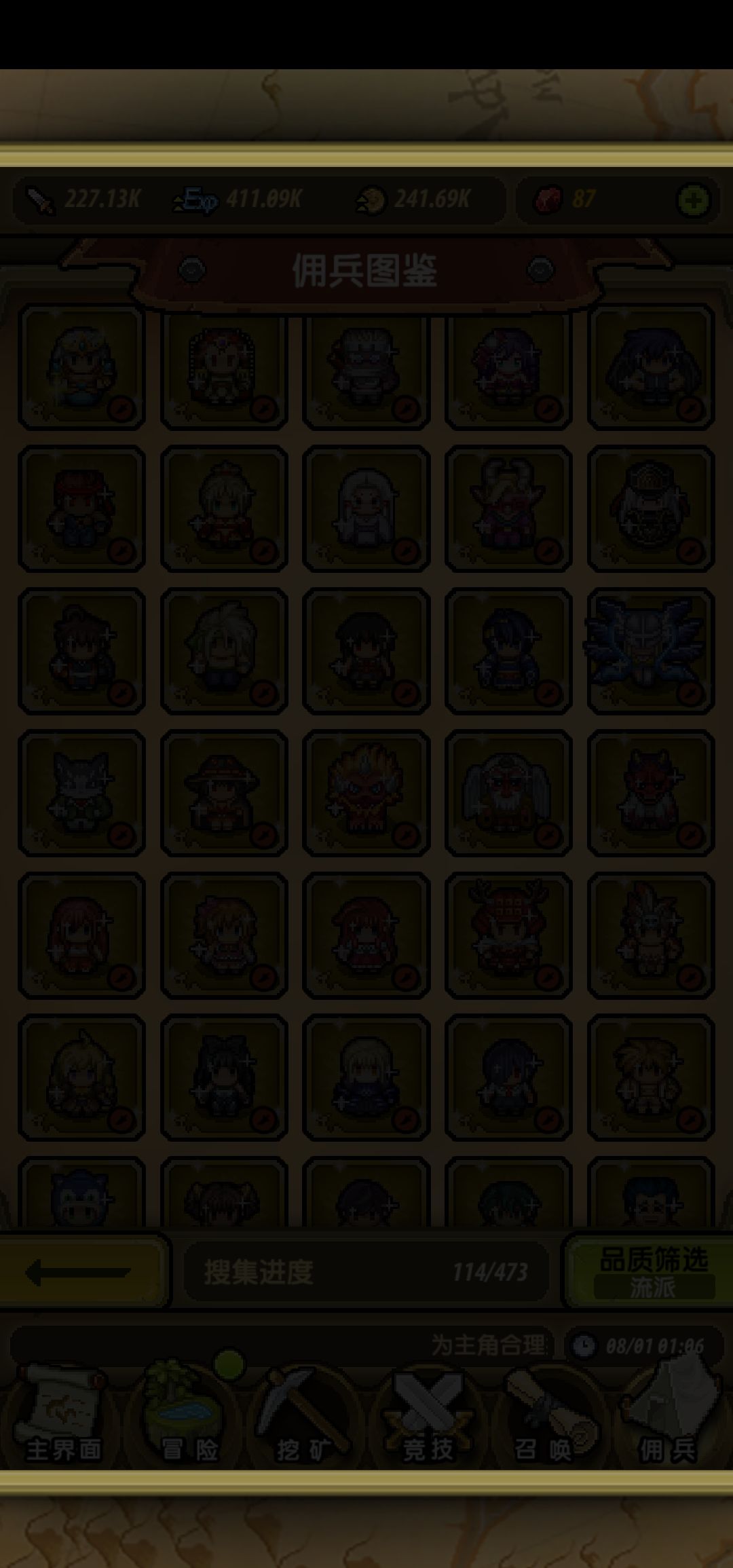 反馈一个bug,点到图鉴里按流派排序,最右一列的第一个跟第二个图鉴,点了就黑屏
