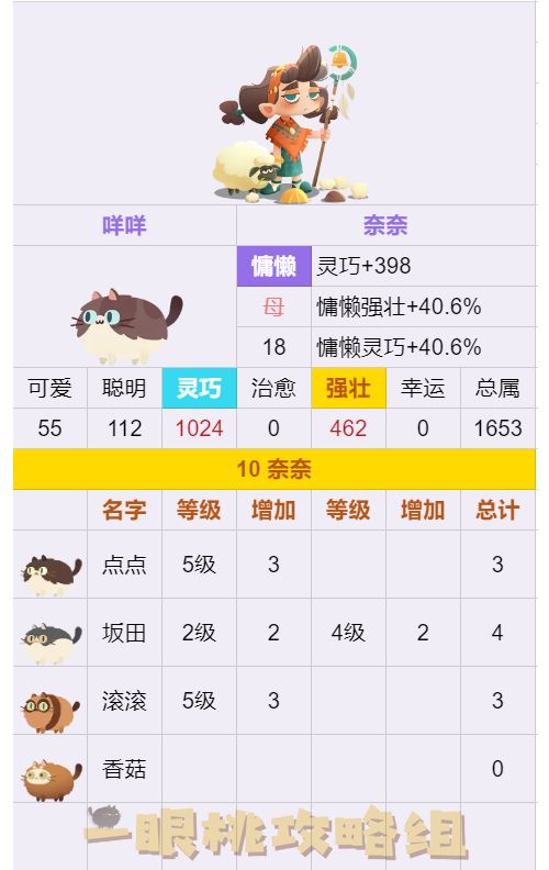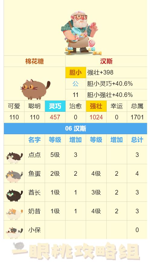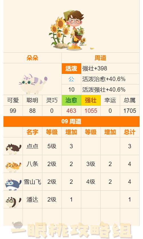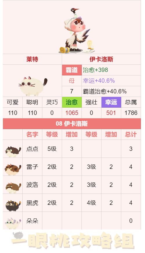 【撸猫指南】房客好感猫咪加成表(截止第三章)