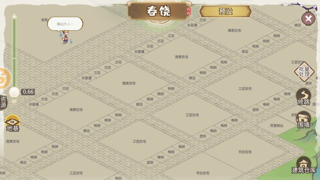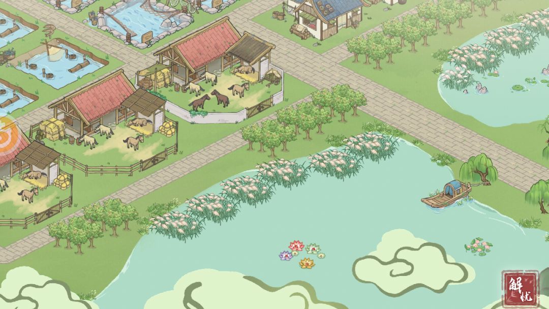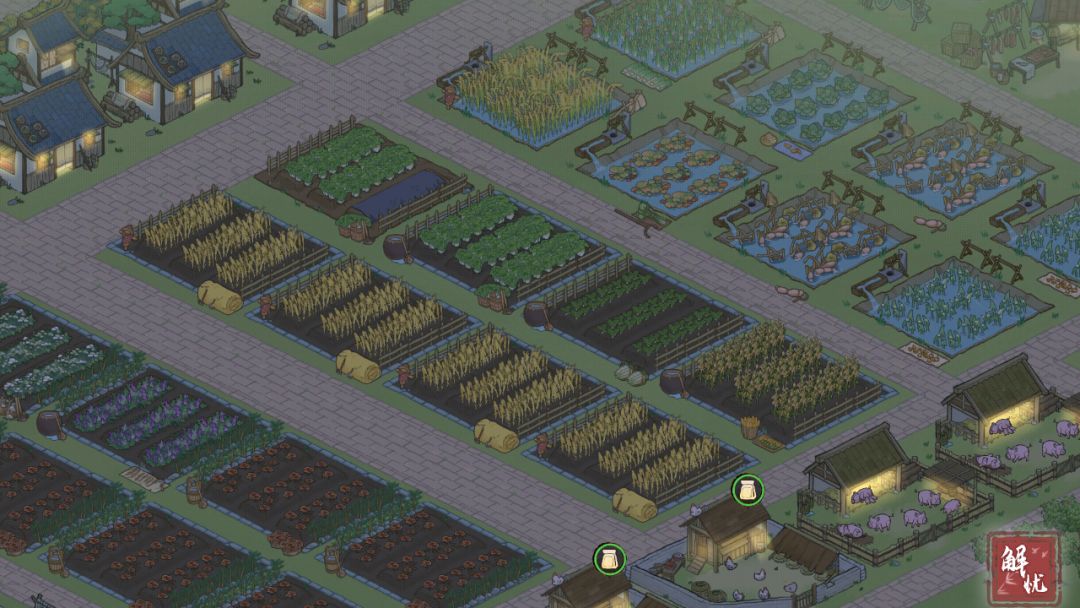 所有农渔矿牧设施及相关人员住房,也尽量兼顾集中和方便的规划。各钓鱼点和伐木点尽量做到不浪费住房空间,比如2*鸡倌+2*猪倌,3*马夫+1渔夫,或是3*羊倌+1伐木工。所谓越陌度阡,枉用相存,契阔谈宴,心念旧恩...大抵如此。