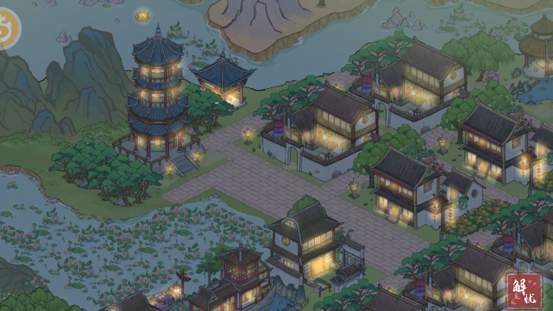 如此基本不用过大的移屏,就能完成全部买卖和制造操作。此为该布局之最大优点。当然这样一来,什么极致美观的园林就和我无缘了,只能尽量利用一些边角地带进行文娱布置。比如这个湖在官府的西边,我称之为西湖,西湖边上的塔当然就叫雷峰塔了。