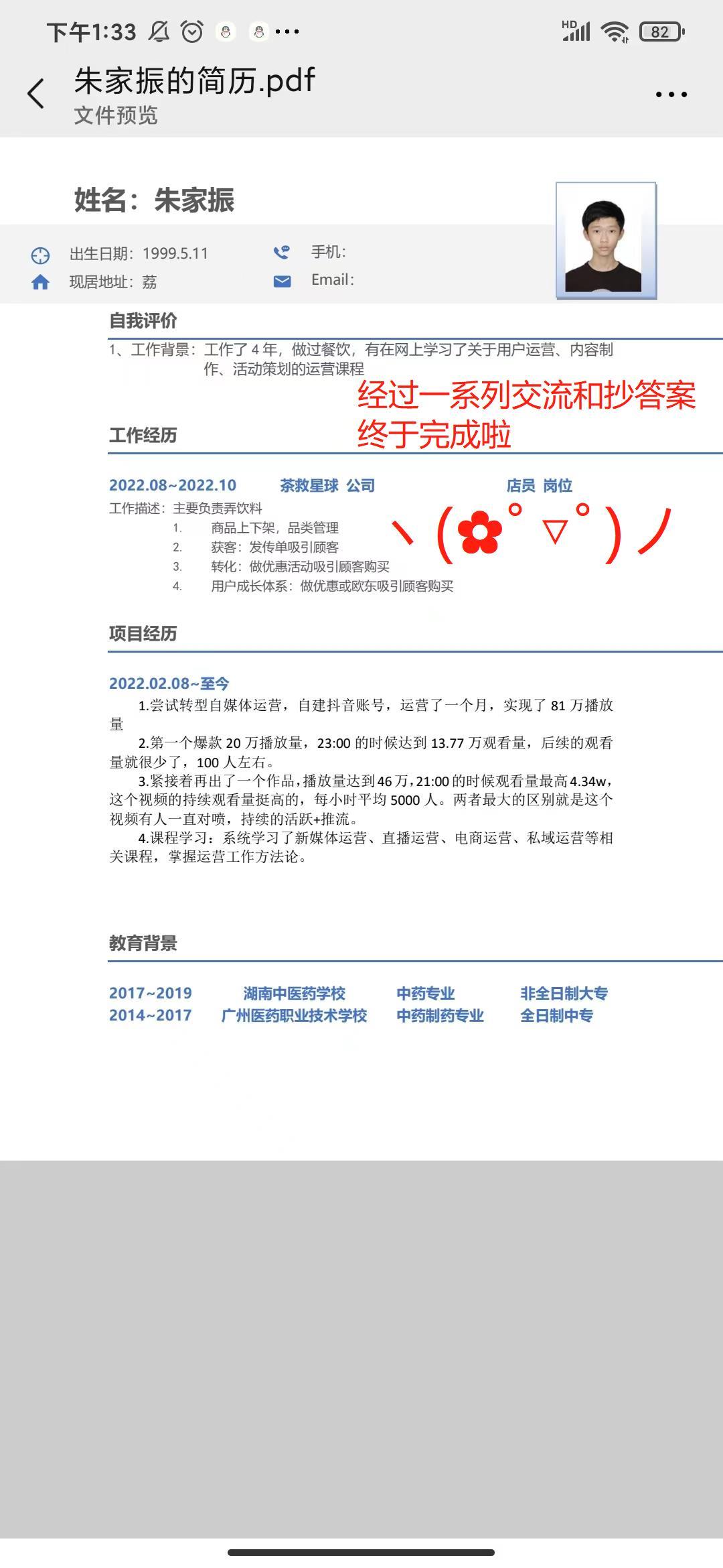 今天没有约到面试,简历终于修改好了