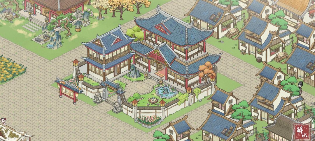 首先是平平无奇的官府,因为没有皮肤。官府周围都是双格的主路。(当初也是为了方便抓鬼)周围建了一圈颜色一样的农夫住宅。