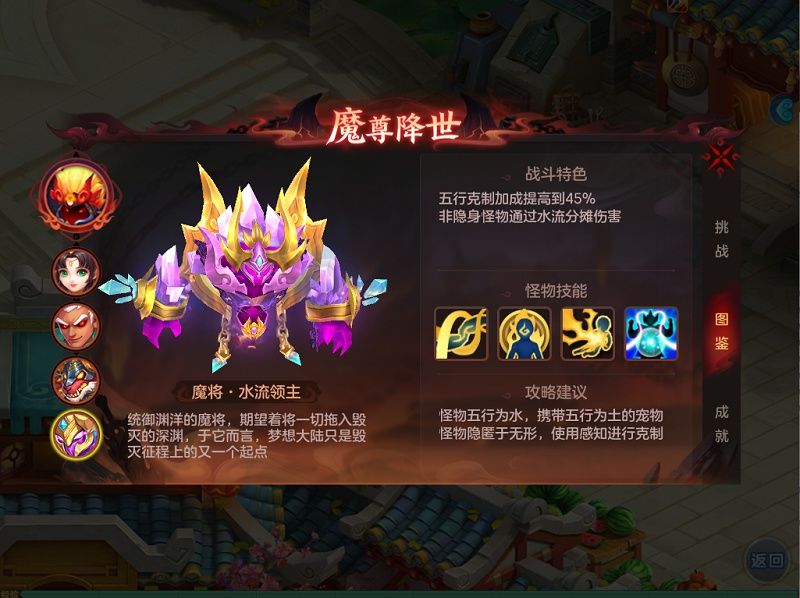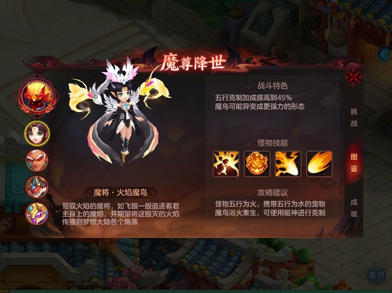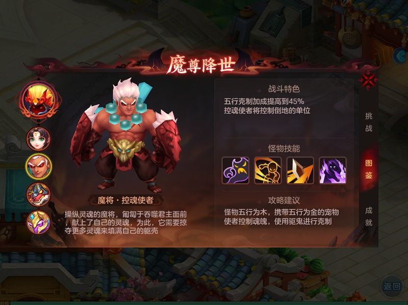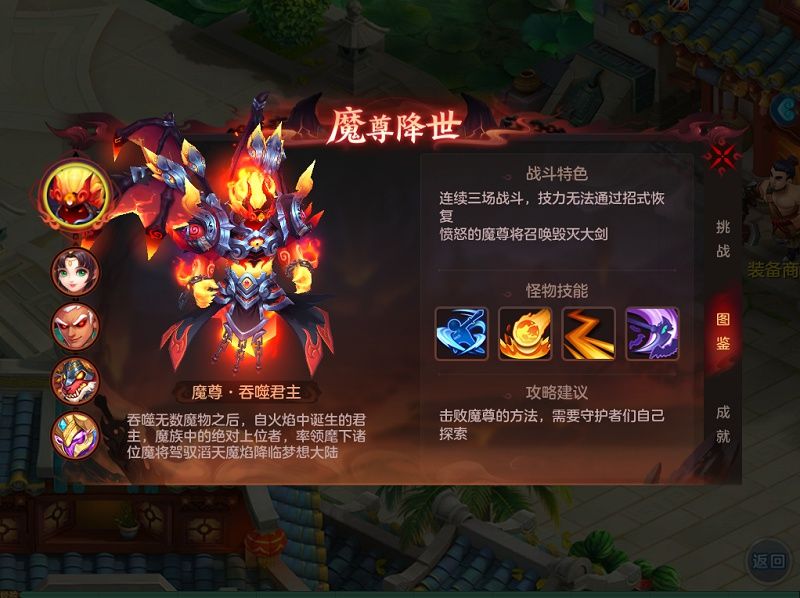 3.魔尊魔将具有各式各样的战斗特色,战斗特色、怪物技能及攻略建议可在图鉴中进行了解。