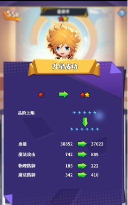 那么提到角色的星级,星级提升后会给予角色更高的品阶,在很大程度上影响到角色的基础属性。一个SSR英雄的第一次升星只需要一名同样的英雄即可,而第二次升级则需要两名同元素同星级的英雄(可以不是同一英雄)才可以升级,后续以此类推。所以说英雄星级的提升并不简单,但对数值提升很大,需要大家大量抽取英雄作为支持。