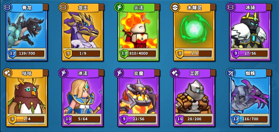 B组阵容:冰骑、冰法、工匠、骨龙、蜘蛛、火法、炎魔、咕咕、龙王、木精灵