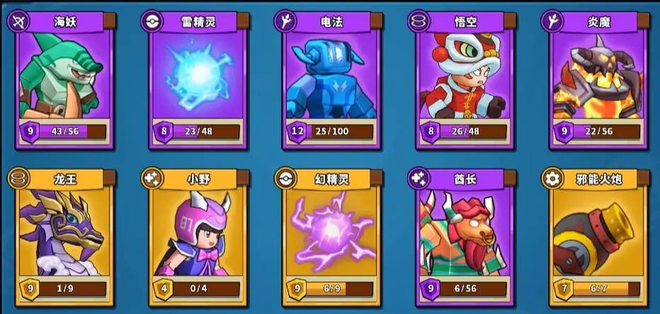 A组阵容:电法、悟空、龙王、炎魔、酋长、海妖、小野、邪能火炮、雷精灵、幻精灵