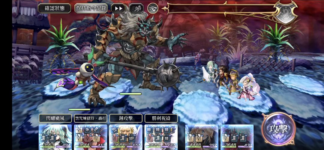 ♦️(常规)我方全体MP消耗30%DOWN(1回合)+拳和锤装备者4人以上展开轰打阵 3人以下展开风王阵