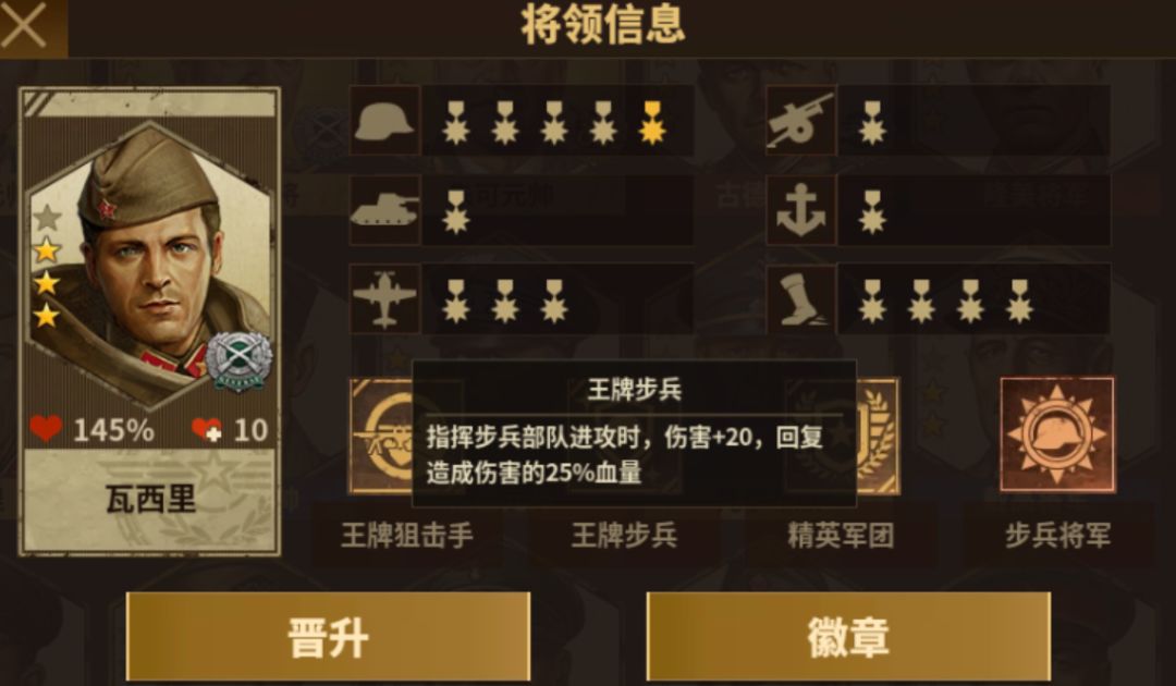 4.面板方面,步兵五星、行动四星,已经碾压了大多数步兵将领。