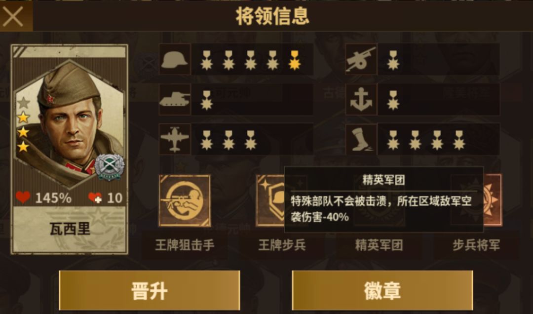 5.特种部队无限存续、防空40%都是其他将领没有的技能。