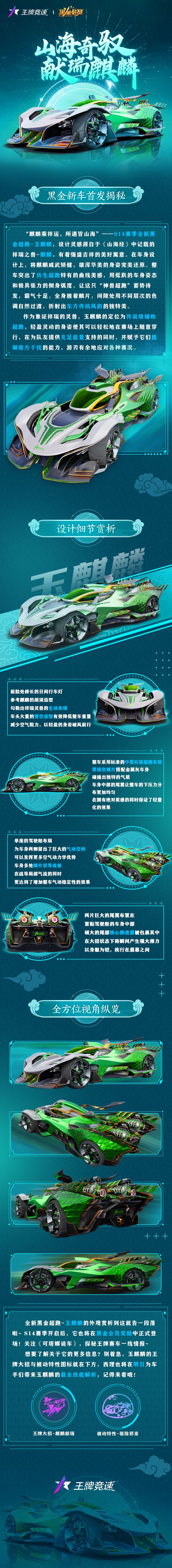 提到新赛季主题“遇见山海”,你最想先遇见谁?传说中的瑞兽之首-麒麟,即将化身全新黑金超跑!接下来,一起掀开“玉麒麟”的神秘面纱,与神兽同行,开启山海奇幻飙车之旅!