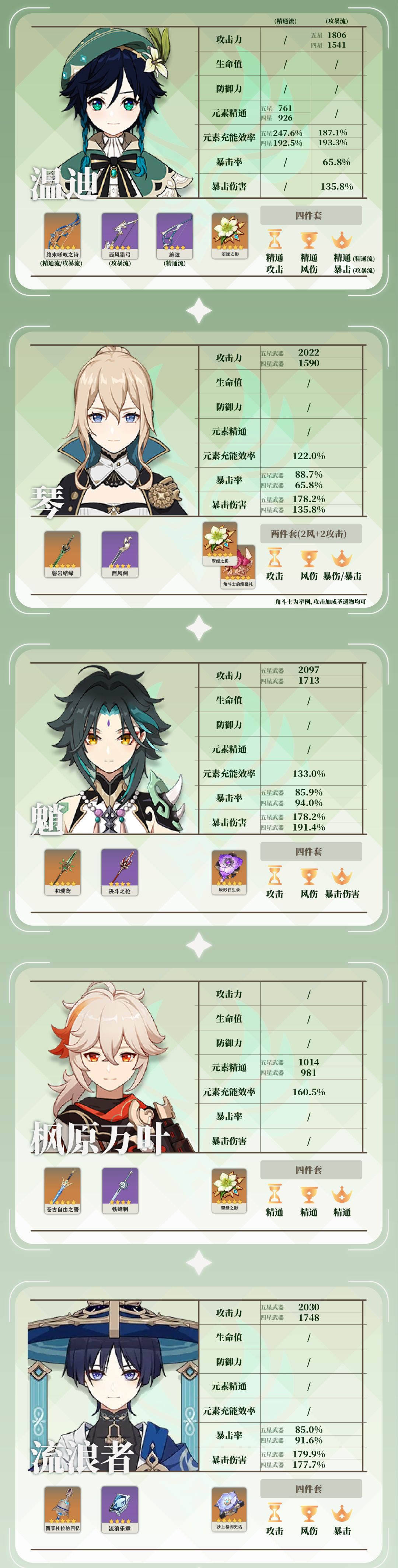 旅行者们大家好呀,本期为大家带来的是五星角色毕业面板参考表。