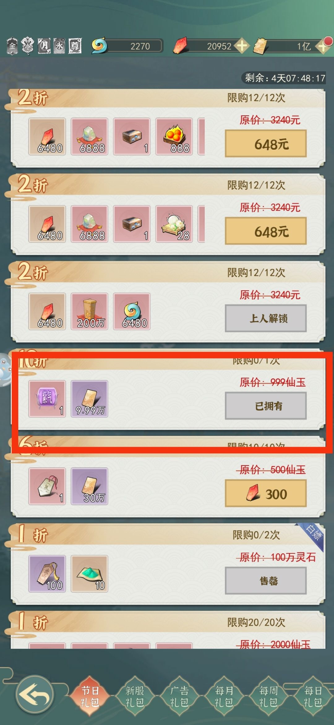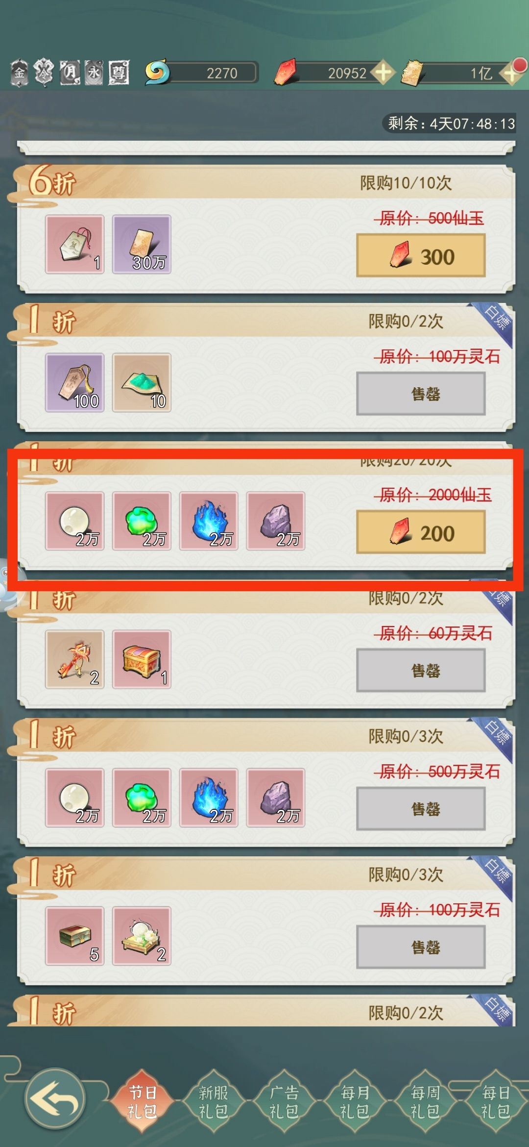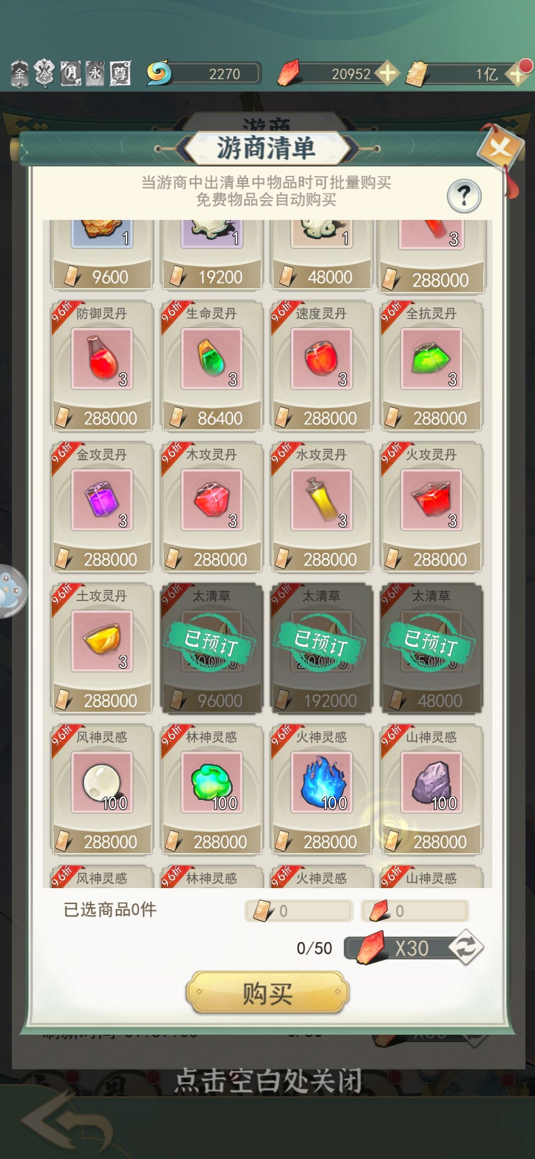 灵感我的建议是买,全买完相等于灵界1级建筑一个多月的产出。如果同氪度别人买你不买资源你是抢不过别人的。