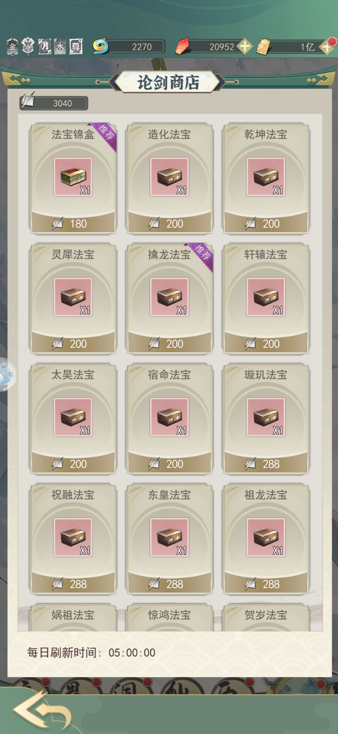 法宝的话,这期法宝都挺有用的。仙玉有剩余可以酌情买,非要选一个的话就买天火琉璃吧。
