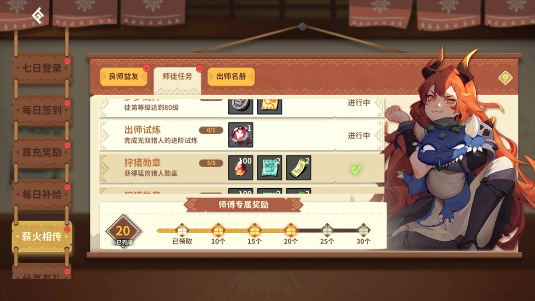【狩猎时刻】全新玩法“薪火相传”——师徒系统上线!