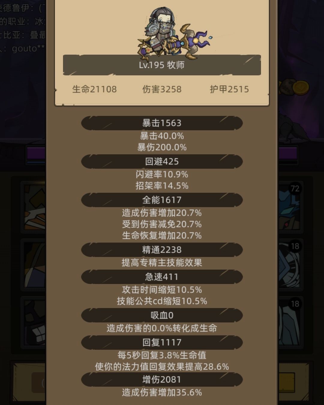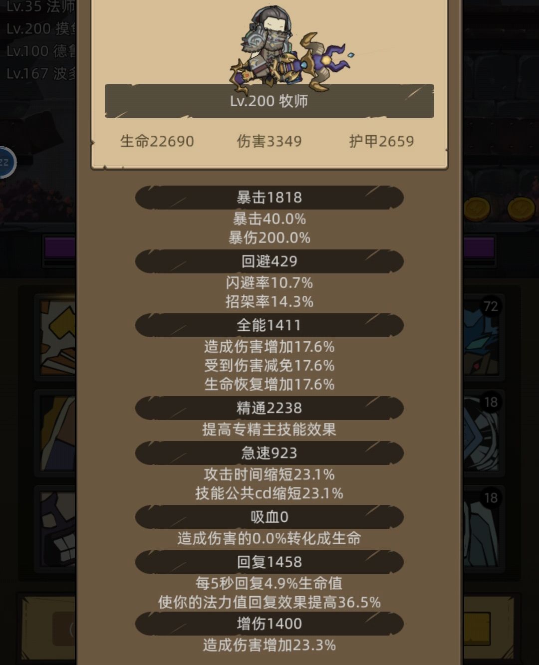 精通适量来一点1600-2200(保证前排生存能力,有的玩家说给前排回血少,就加点专精,或强化随从提升随从最大生命值基数)