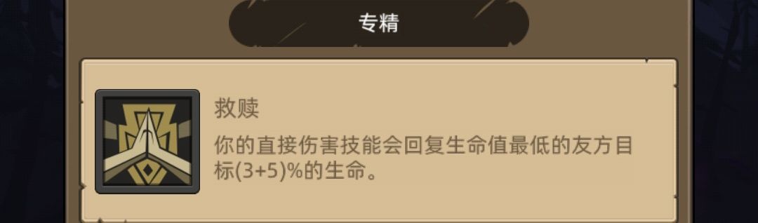 专精方向,注意是,友方目标生命的百分比,不是你自己的,所以你的前排生命越高,回血越多, 主角适量增加专精来提高奶量保证前排不死
