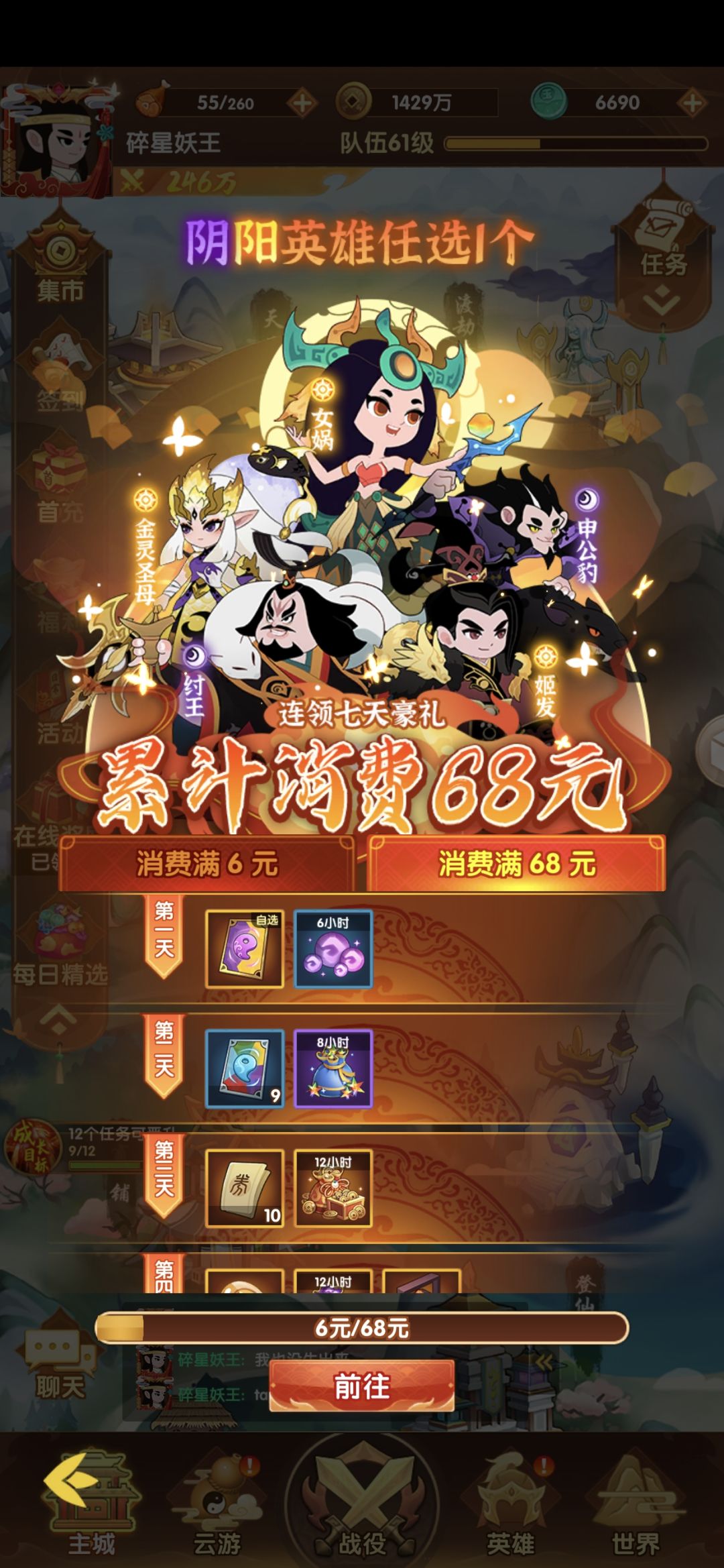 白嫖可玩,关卡每日会送VIP经验,每天送20抽。我只是首充了6元。有实力可以买终身卡。前期可以养太乙真人,开卜卦了可以抽闻仲或者申公豹。木系长耳定光仙,南极仙翁需要。心愿可以按照图上挂。后续持续推图即可。仙玉福利也挺多,所以我买了商店200仙玉的兑换币,用来快速兑换光暗和混沌。多余的我拿来卜卦抽申公豹。最后祝福大家卜卦天天中3万大奖。
