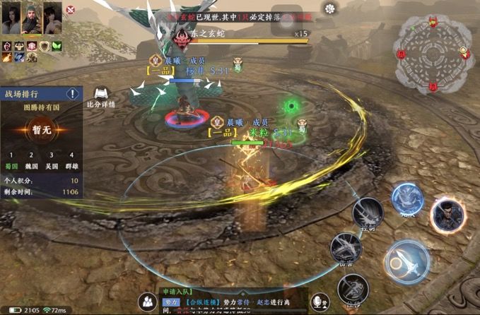 ②21:05-21:07,进场,跑的快的(战力低的)赵云和关羽优先去打最远的蛇,尽量保证4蛇同时最后一击,这样获取旗子概率最高。21:07准备4个地方神器。扛旗人的召集国家成员和随机传送是保命技能,不能乱用,扛旗人最好是战力最高的玩家。随机传送一般是4条蛇的死亡点。
