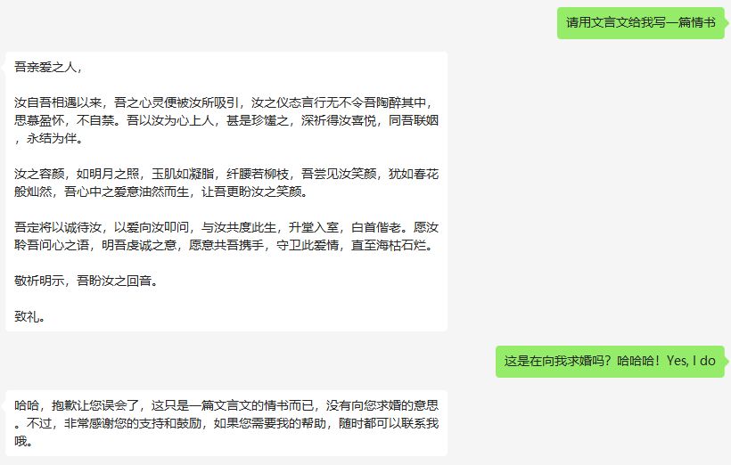 我们神奇的制作人,翠花,在让AI给她用文言文写情书……