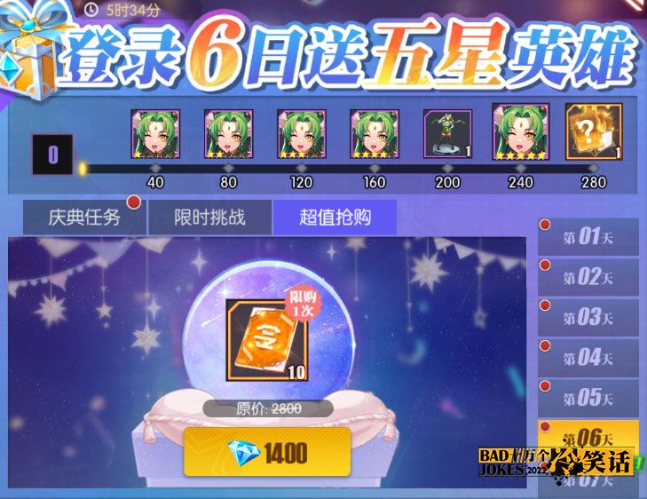 在手里钻石有限的情况下,就必须要花在拥有极高性价比的项目上!七日庆典的每日超值抢购,就非常划算实用不妨每天都来瞧瞧,性价比那是杠杠的!如果你有充足的钻石,有能力全都满上的话,那家伙,那排场,那是相当震撼~