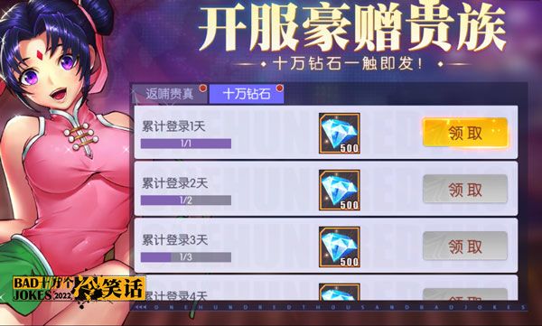 想要获取钻石,就要先从最划算赚得最多的活动抓起:登录就送100000钻(没打错0)的天命贵族!投资1000钻返还20倍的开服基金!达成条件就给26950钻的成就奖励……每一个数字都多得让人头脑发晕,拿下了这些几、乎、白、送的活动,保证你钻石滚滚来!