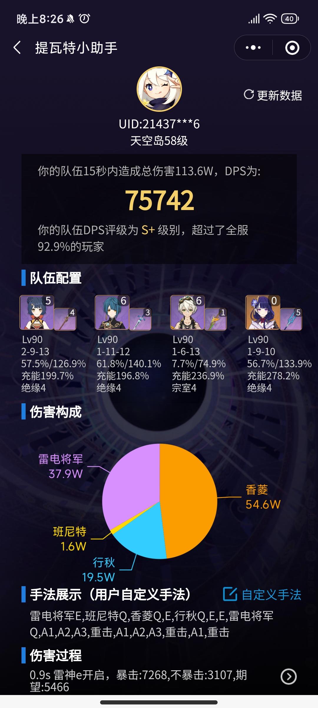 我感觉天赋全拉满都能8w,要是极品圣遗物一金雷国可能10w真的没问题