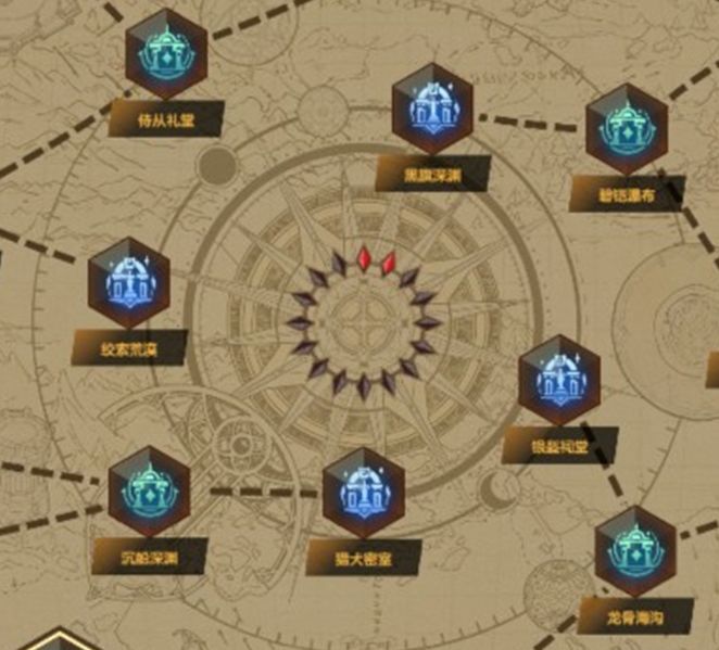 冒险者通关当前关卡后,会驱散地图迷雾,解锁相邻路径上的下一关卡。这些关卡也有等阶之分,越靠近地图中心的关卡等阶越高,相应也更具挑战性。