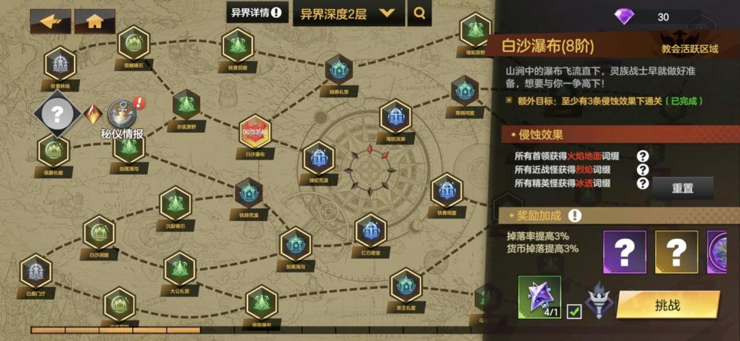 到达异界深度2层以后,会随机出现限时的“突袭首领”玩法,过时不挑战该关卡就会消失。