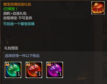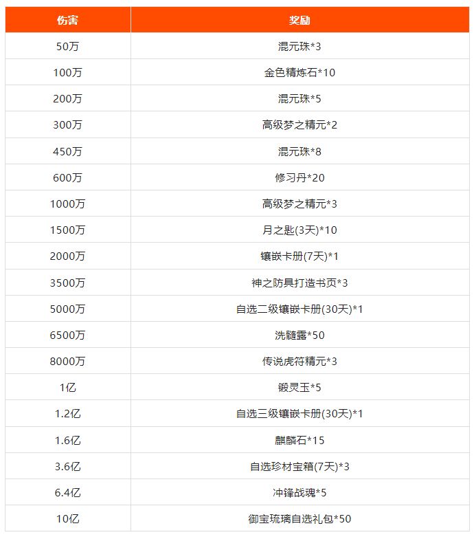 伤害达到10亿时可以获得50个御宝琉璃自选礼包哦~