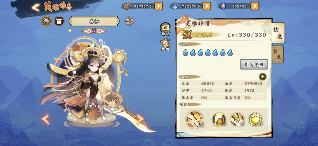 简介:无双现版本最强英雄,血厚,伤害高,一只打你全队,还有替队友抗伤,氪佬首选,最强主C,双羲和无敌。